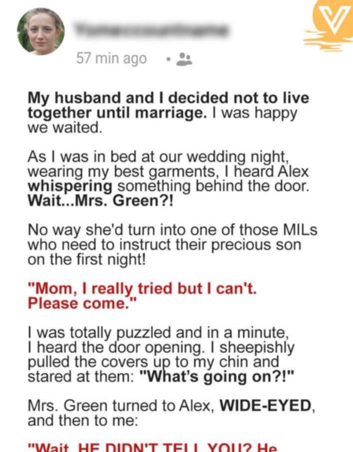 But when we settled in bed, I heard Alexa talk to his mother in front of the door and my heart raced. Why was she together on our first night? I pulled out the covers, confused and anxious.