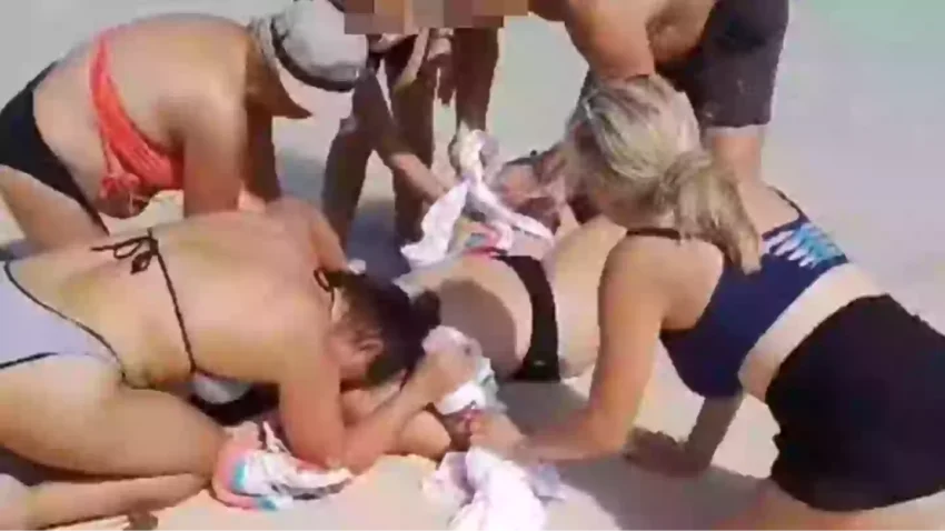 One witness said the woman’s family was close by when the attack happened, and she was even able to walk back to shore after being beaten.