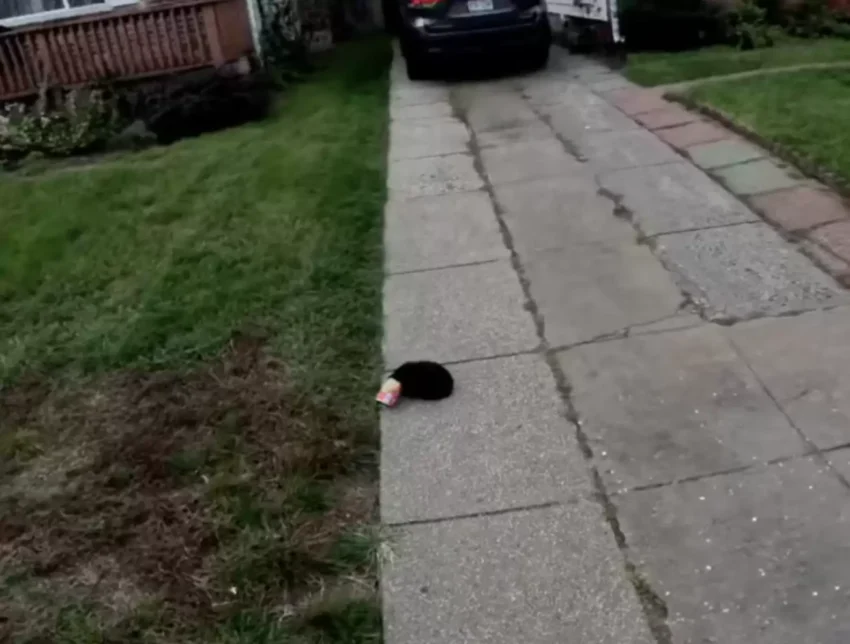 Trapped and afraid, a small black cat stumbled near a suburban road in Long Island, New York, perhaps hoping someone might notice him and help. The cat had gotten his head stuck while sniffing inside a jar, and now everything was completely dark.